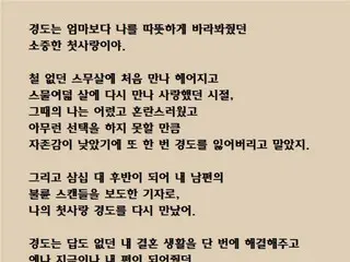 Surat pengantar yang ditulis oleh mantan pacar Wakil Direktur Departemen Hiburan, Park Seo Jun, telah dipublikasikan. Drama baru "Waiting for Kyung Do" dijadwalkan tayang perdana pada bulan Desember.
