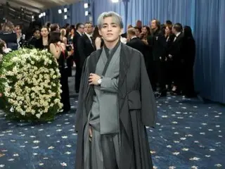 Kami menciptakan suasana seperti ini. S.COUPS dari "SEVENTEEN", yang juga sukses melakukan debut Met Gala-nya seperti Lisa, mengenakan pakaian pria yang unik.