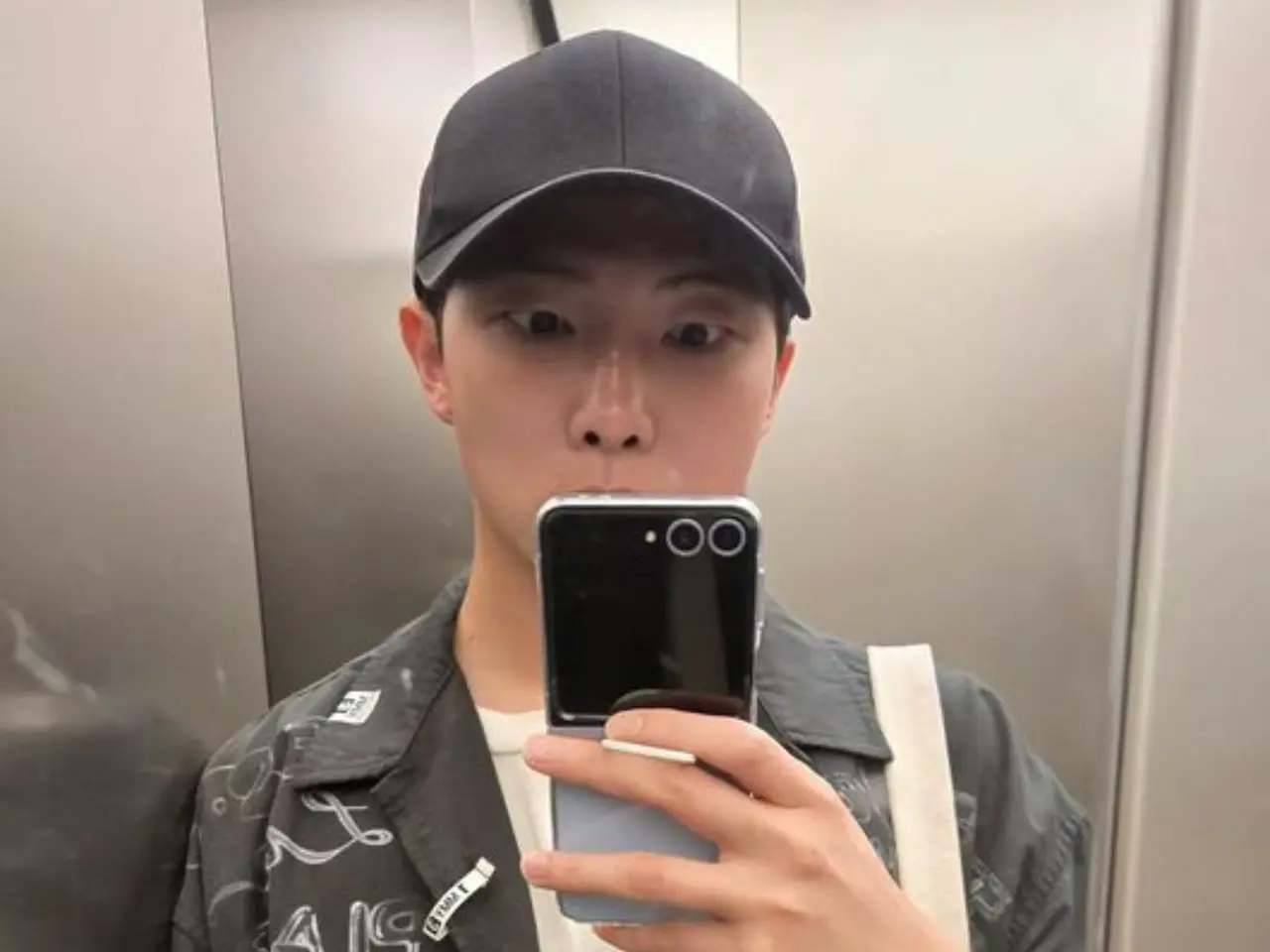 Foto yang dirilis menunjukkan RM mengambil swafoto cermin di dalam lift.