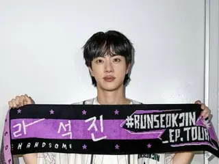 JIN juga mengungkapkan perasaannya tentang tur konser penggemar tersebut dengan mengenakan sesuatu yang tampak seperti seragam bisbol dan memegang handuk bertuliskan "Run Seokjin".
