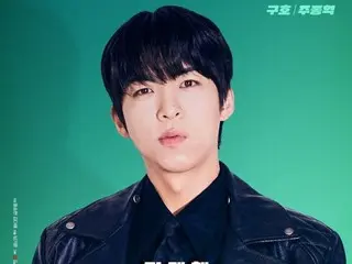Joo Jong Hyuk, dengan latar belakang hijau, menunjukkan ekspresi imutnya sebagai anggota termuda tim, Myung Gu-ho. Ia memiliki kepribadian yang murni dan benar, dan sedikit