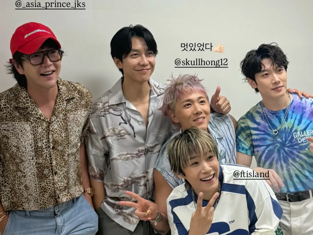 Lee Seung Gi terlihat tersenyum cerah dan mengacungkan jempol bersama Jang Keun Suk dan Lee Hong Ki FTISLAND, Lee Jae Jin, dan Choi Min Hwan.