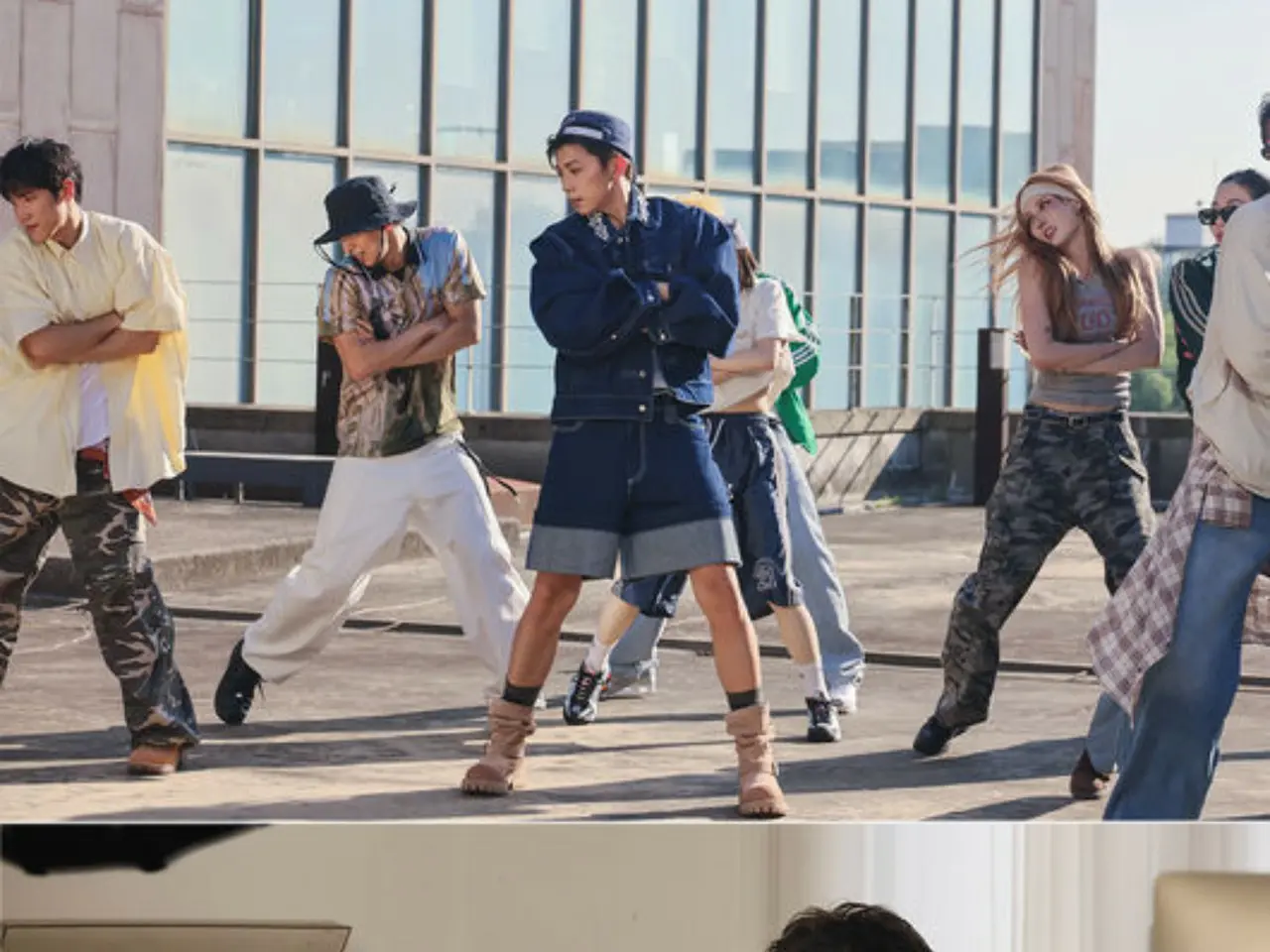 Wooyoung tampil bersama para penari di lokasi syuting.