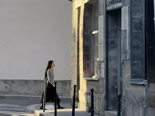 Dalam foto-foto tersebut, Jennie terlihat berjalan-jalan di pusat kota Paris dengan kombinasi sederhana berupa rajutan abu-abu, rok panjang hitam, dan sepatu hitam.