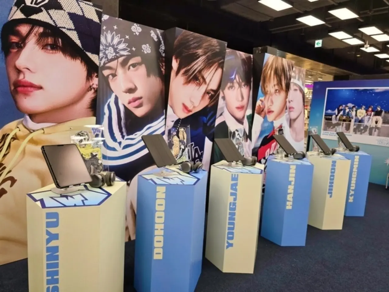 Mini album ke-4 TWS "play" dijual di Iconic Zone di lantai dasar kedua mal Seoul.