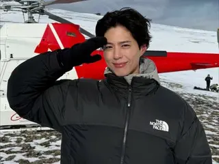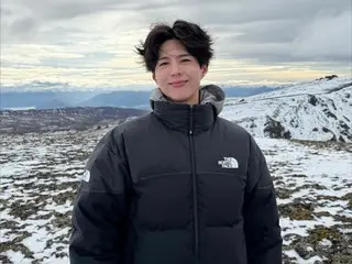 Hidung merah Park BoGum dengan latar belakang pegunungan bersalju sungguh menarik perhatian.